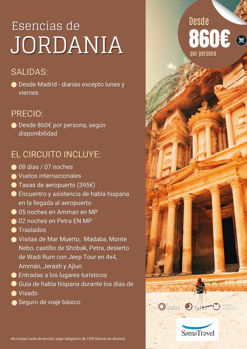 Esencias de Jordania: Circuito 8 días con vuelos, alojamientos y visitas incluidas. **Desde solo 860€**